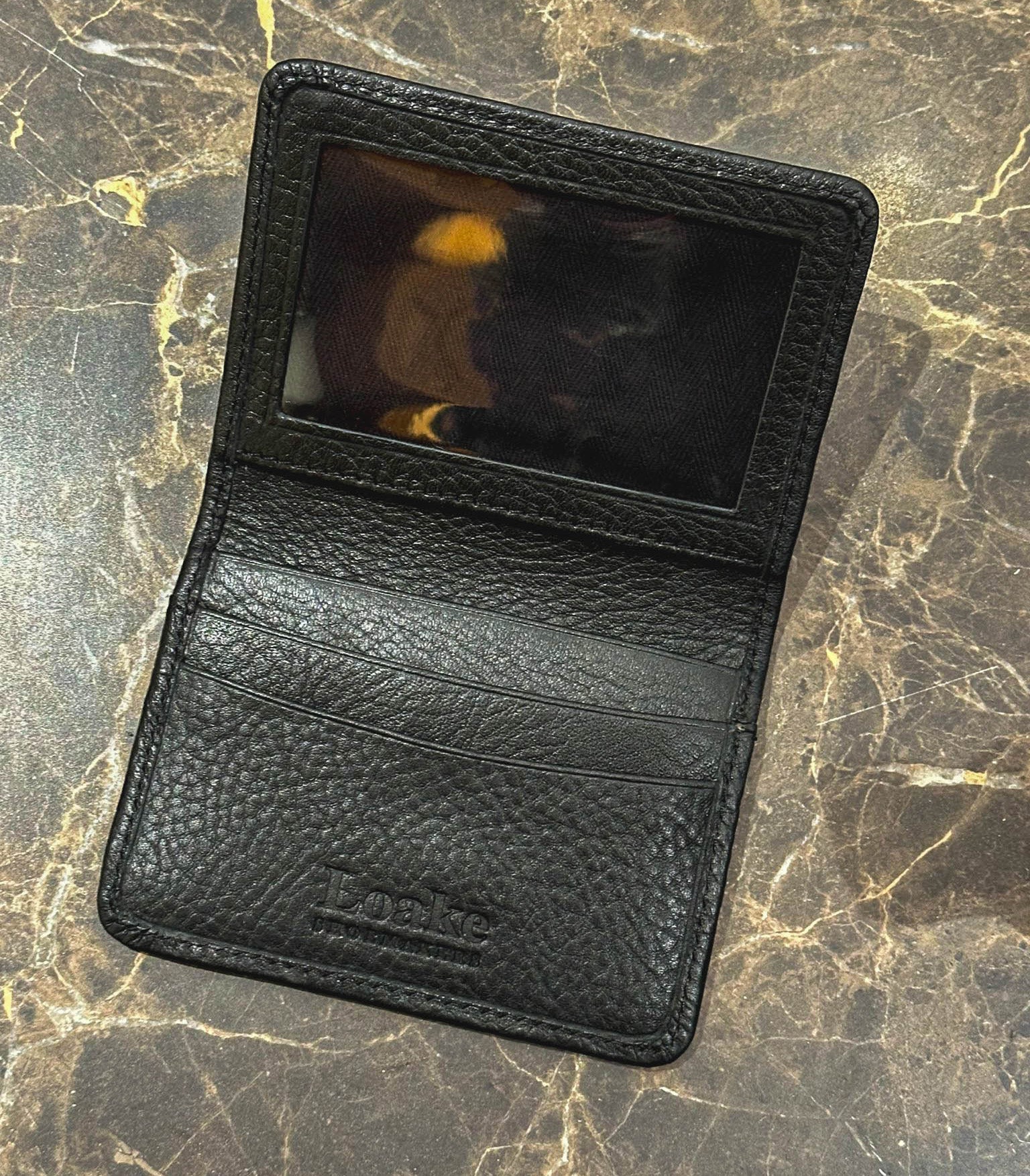 Our ‘Fenchurch’ premium calf leather card holder features an embossed Loake logo on the inside, with multiple card slots, as well as clear plastic ID section. These leather card holders are designed and engineered in Kettering and made in our high-grade factory in India.